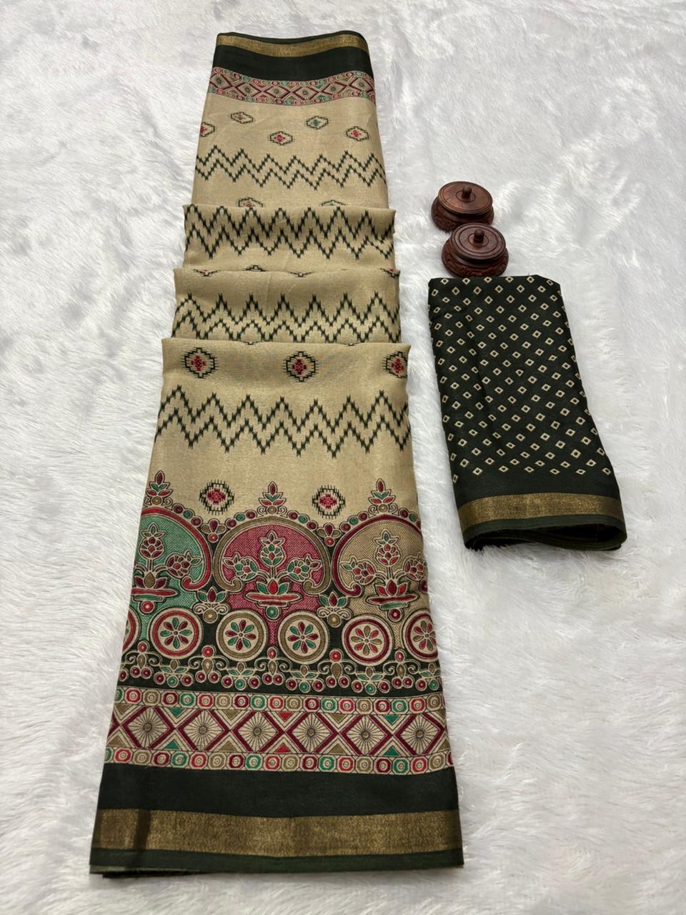 [ zari weaving border and beautiful HD ikkat style print ]