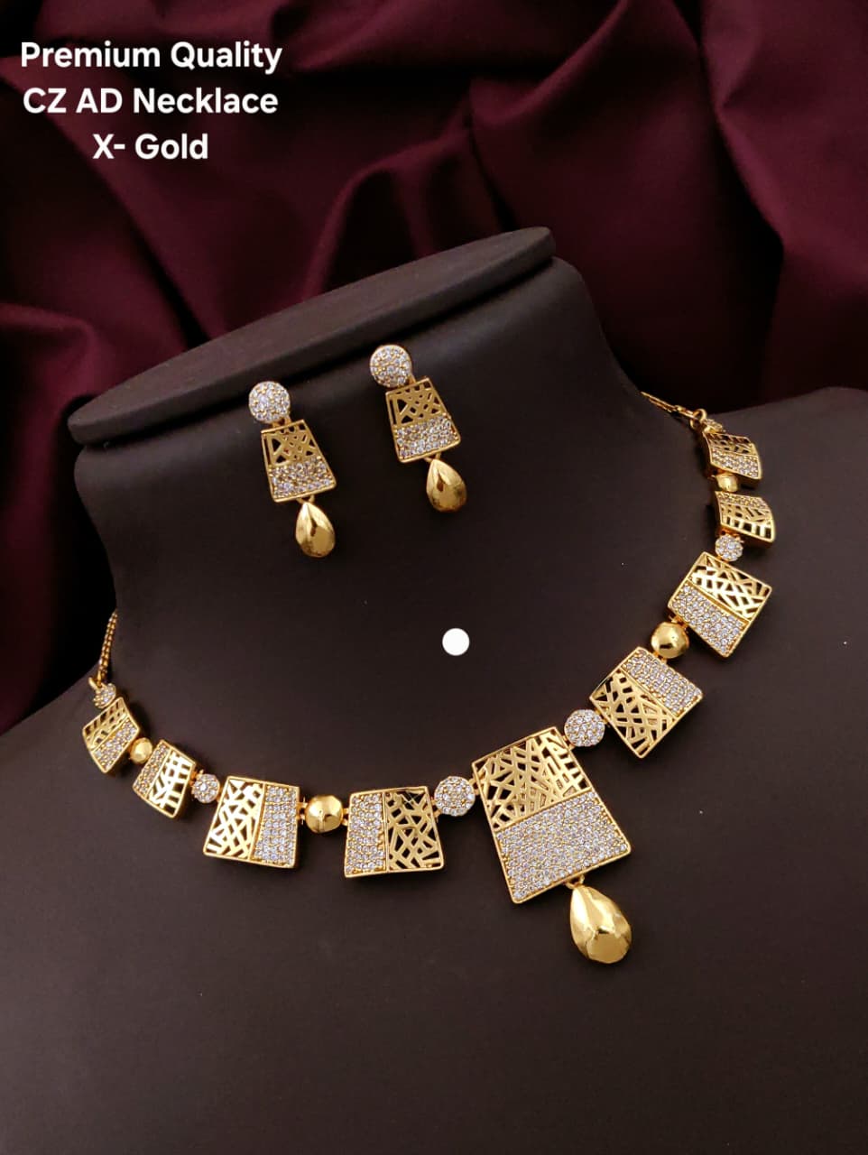 premium Quality cz ad necklace x-gold